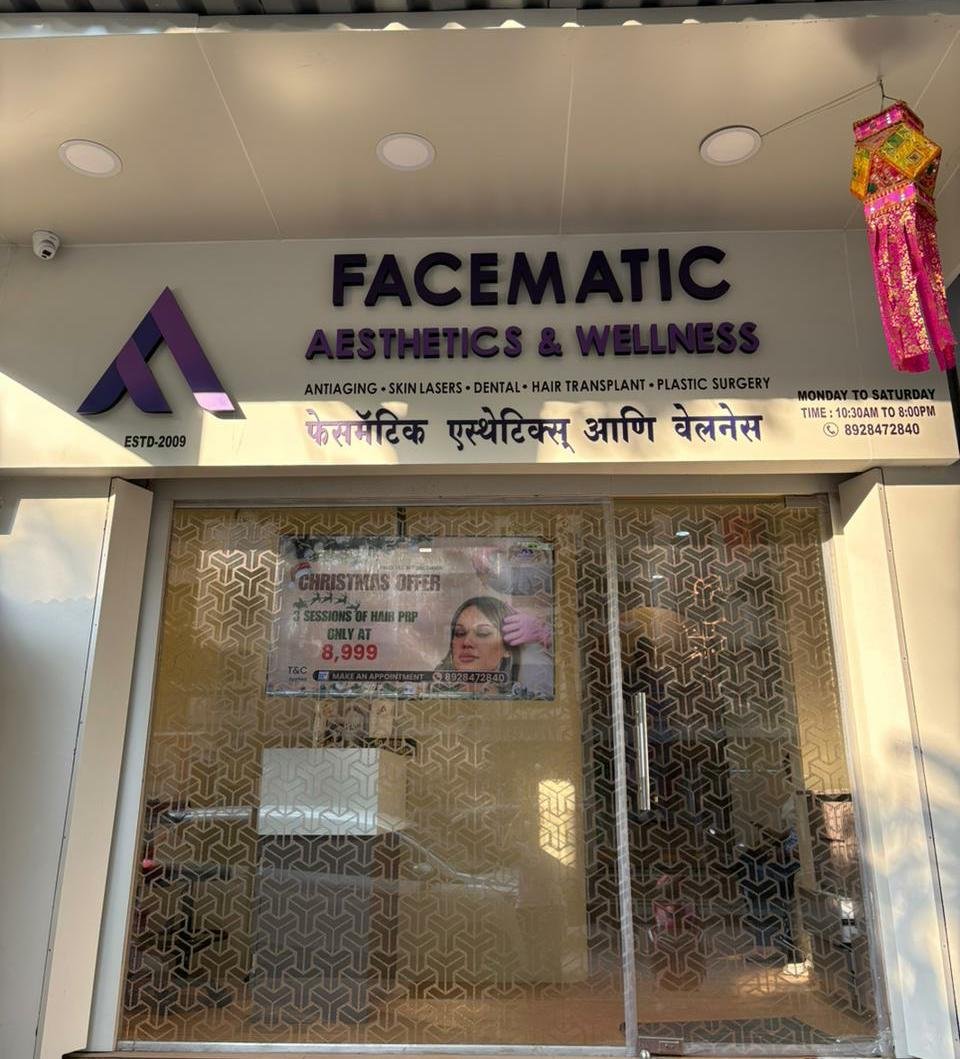 Welcome to Facematic Aesthetics, your premier skin care clinic in Mumbai, India! We are located in Borivali West, right next to Padmavati Jewellers and close to Phoenix Hospital. Our dedicated team specializes in advanced aesthetic treatments to help you look and feel your best. At our clinic, we offer a wide range of popular services. We provide effective solutions like nonsurgical facelifts and HIFU to tighten and lift your skin. Say goodbye to unwanted hair with our state-of-the-art laser hair reduction. We also offer rejuvenating medifacials and carbon facials to give you a glowing complexion. Looking for more specialized care? We perform hair transplants and peels for thicker, healthier hair. Our anti-aging treatments include Botox,